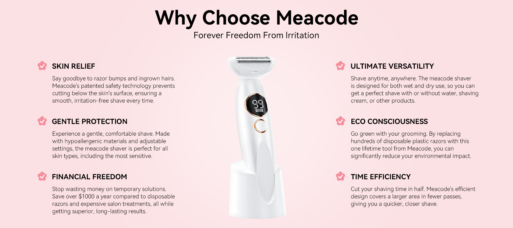 Meacode Bikini Trimmer for Women is your daily grooming revitalizer and confident beauty companion, bringing professional-level shaving right into your home.