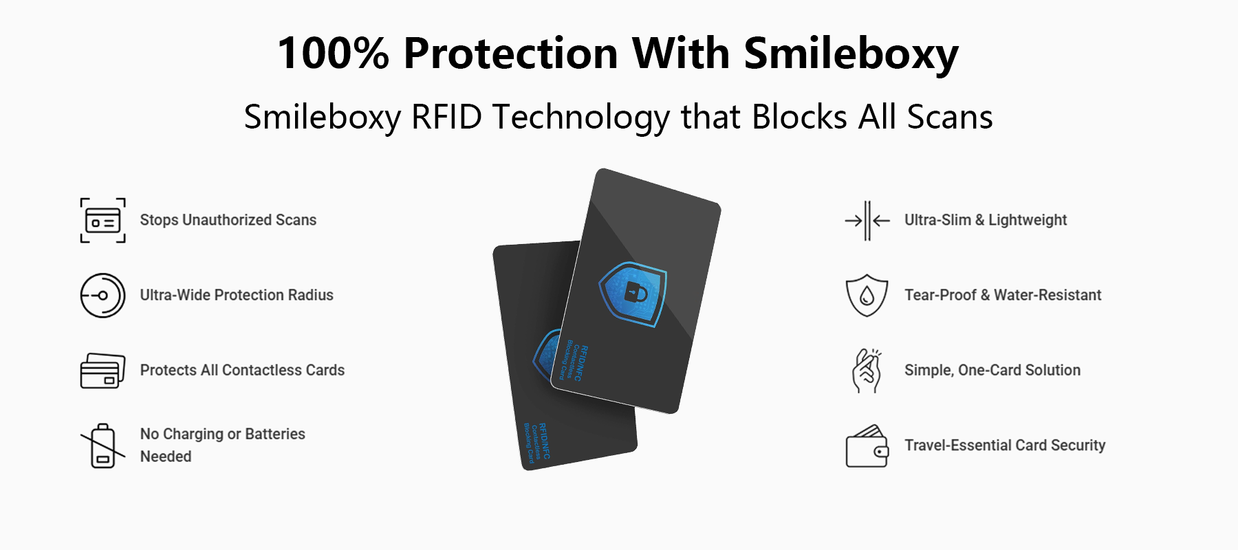 Meacode uses advanced RFID-blocking technology to create a 5cm electronic shield around your cards. This instantly blocks skimmers and unauthorized RFID/NFC scans, keeping your credit cards, IDs, and passports safe in crowded places like airports, malls, and public transport.